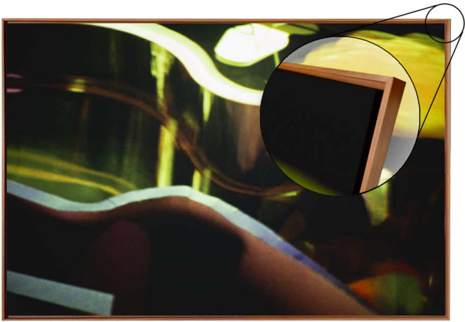 - Frame for stretched canvas on the frame, similar to the fillet, but with a 5 mm gap between the canvas and the frame. Measures 1 cm wide by 4 cm high. Available with aluminum hanger.
